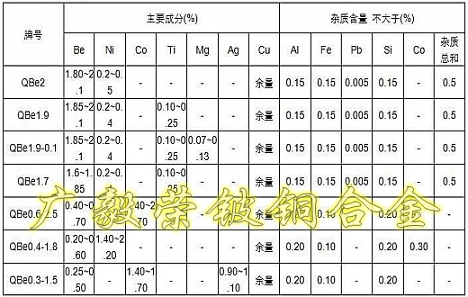加工鈹青銅含鈹量控制在2%以下,國產鈹銅加入0.3%的鎳,或加0.3%的鈷。